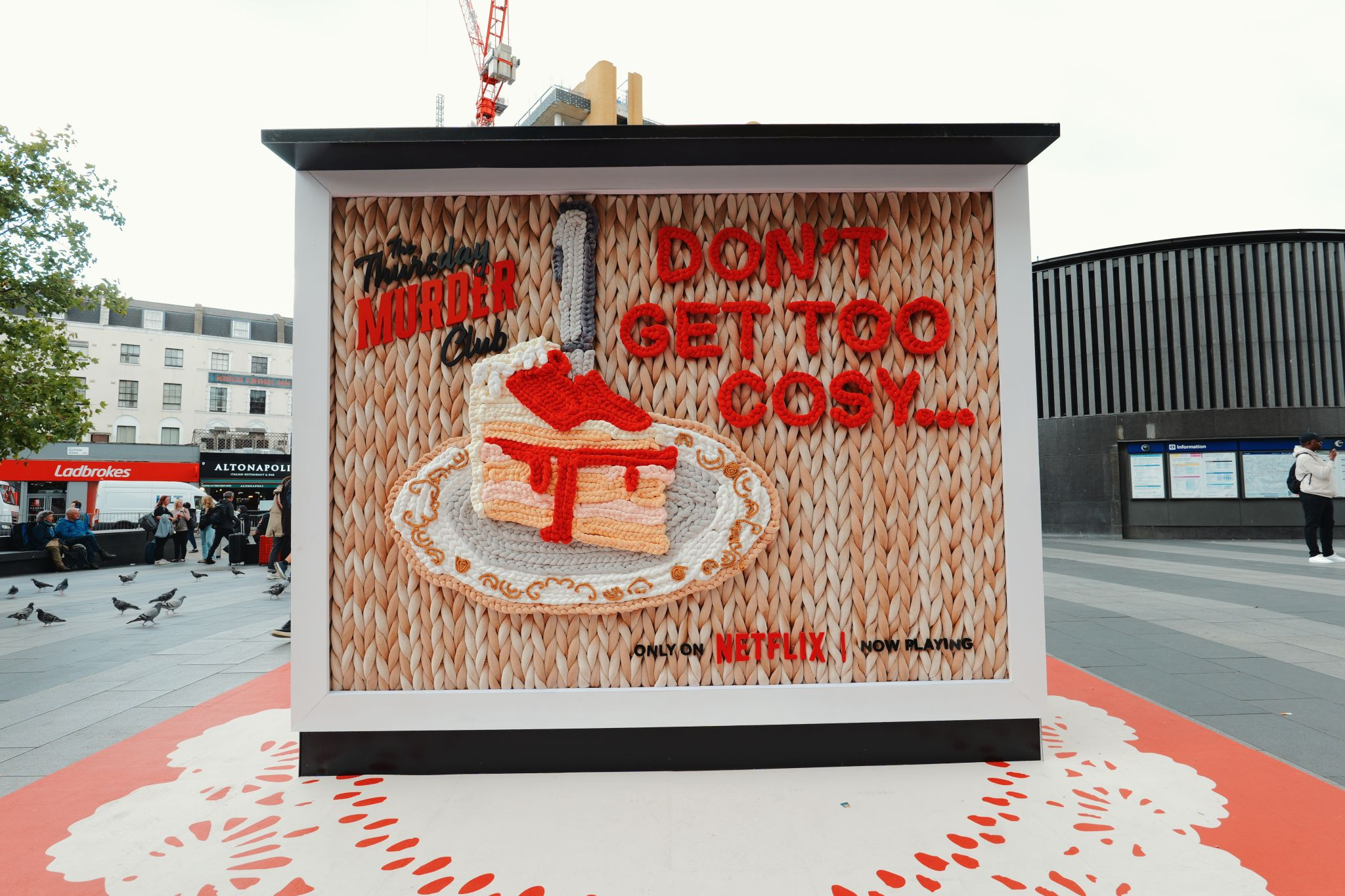 Netflix’s biggest film launch of the summer: The Thursday Murder Club, a film about pensioners who get together to solve murders in an old people’s home. It’s a cosy night in kind of murder mystery so we created cosy ads made of wool, with mildly threatening undertones.